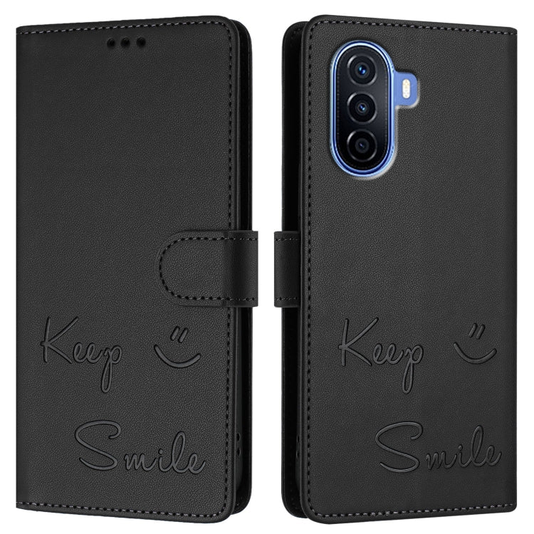 Funda de Cuero Rfid con Relieve Sonriente para Huawei Nova Y70 Plus (Negra)