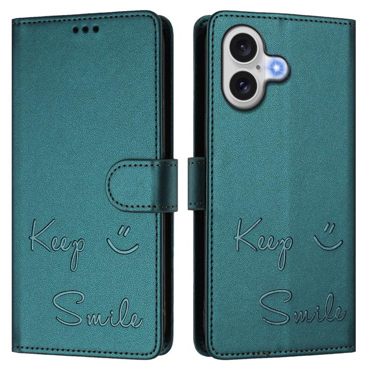 Funda de cuero RFID con relieve sonriente para iPhone 17 (verde pavo real)