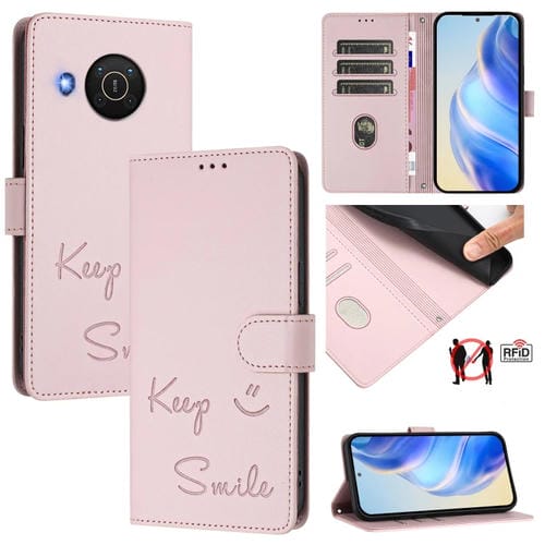Funda de Cuero Rfid con Relieve Sonriente para Nokia X20/X10 (Rosa)