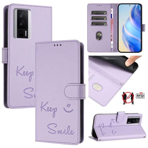 Funda de Cuero Rfid con Relieve Sonriente para Redmi K60/K60 Pro (Morado Claro)