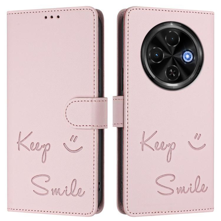 Funda de Cuero Rfid con Relieve Sonriente para Tecno Spark 30C 5G y Pop 9 5G (Rosa)
