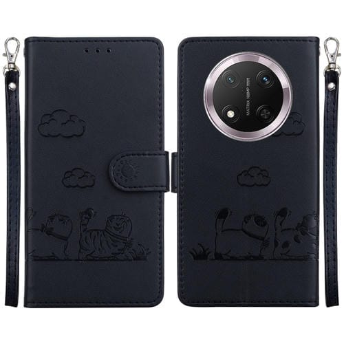 Funda de Cuero Rfid para Honor X9C con Diseño de Gatos (Negra)