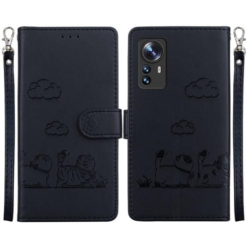 Funda de Cuero Rfid con Diseño de Gatos para Xiaomi 12/12X (Negra)