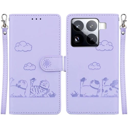Funda De Cuero Rfid Con Diseño De Gatos Para Xiaomi 15 Pro (Morada)