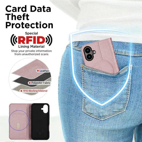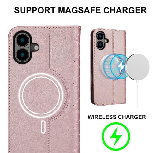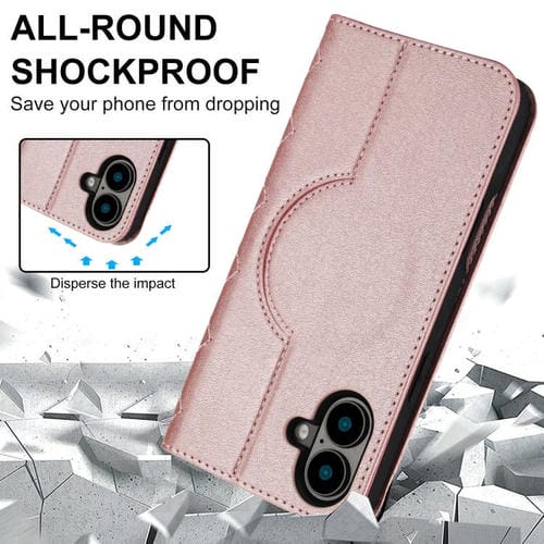 Funda de cuero Rhombic MagSafe RFID antirrobo para iPhone 17 (oro rosa)