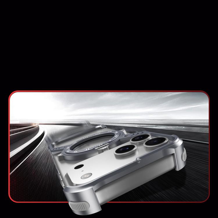 Funda de metal MagSafe sin marco para iPhone 17 Pro, con soporte 360°, forma de S, airbag (dorado desierto)