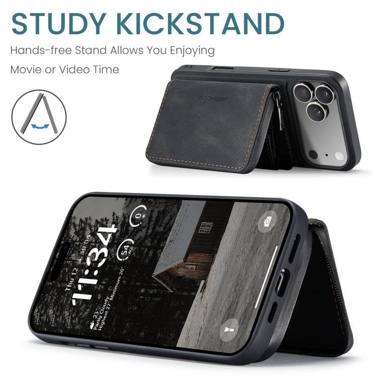 Funda de piel con cremallera magnética horizontal tipo libro JEEHOOD J02 para iPhone 17 Pro Max (negra)