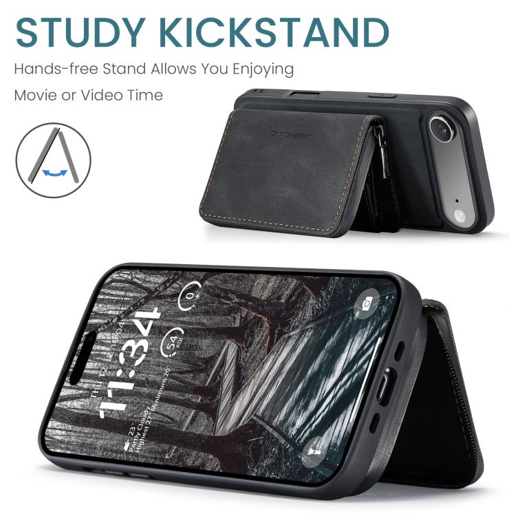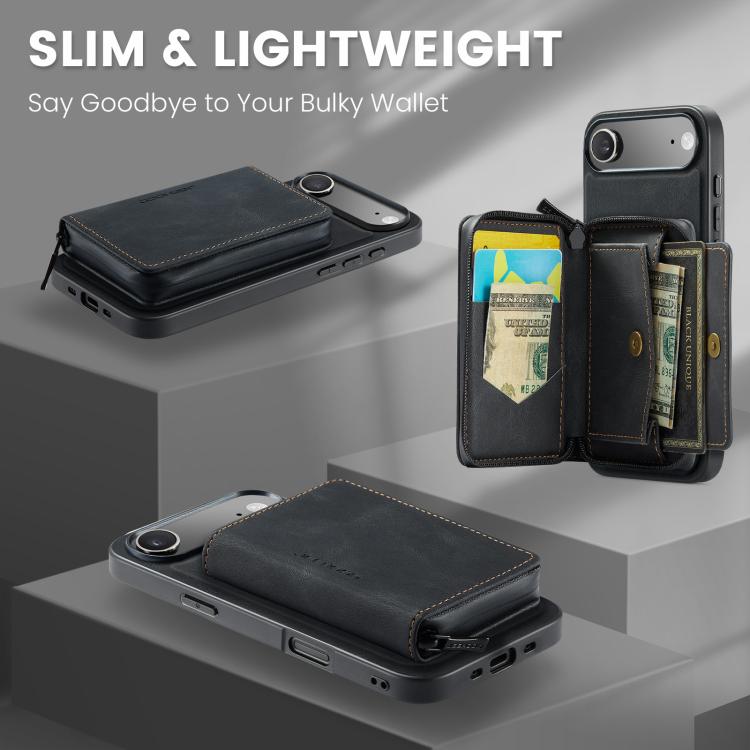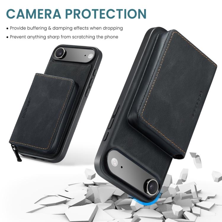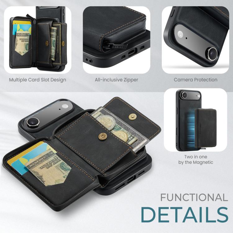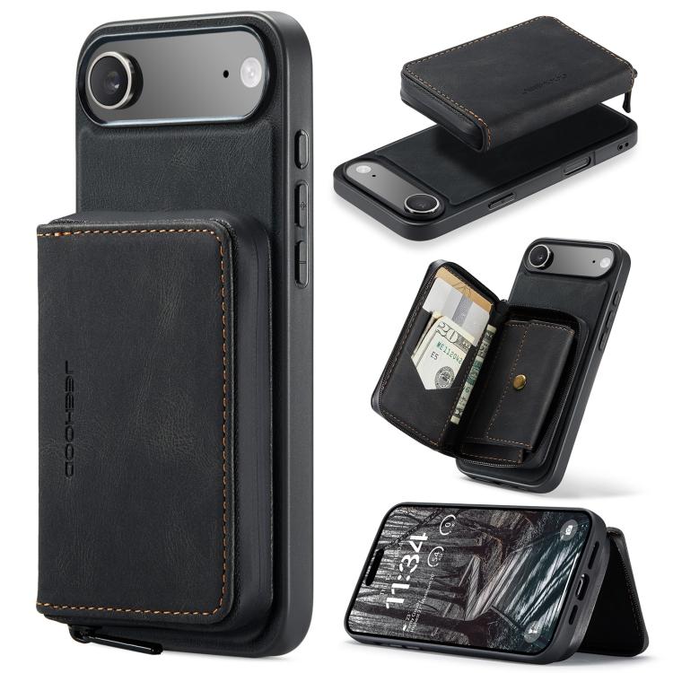 Funda de piel con cremallera magnética JEEHOOD J02 tipo libro horizontal para iPhone Air (negra)