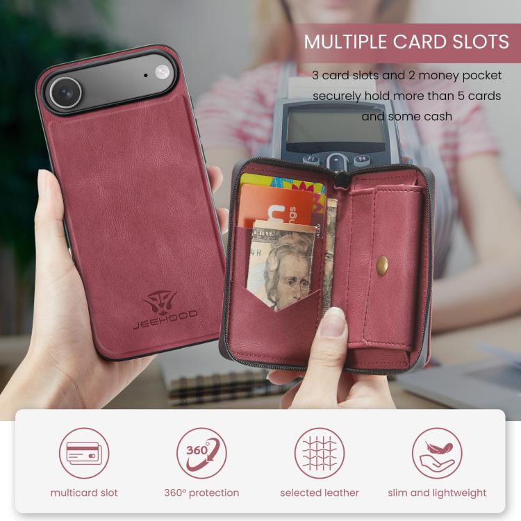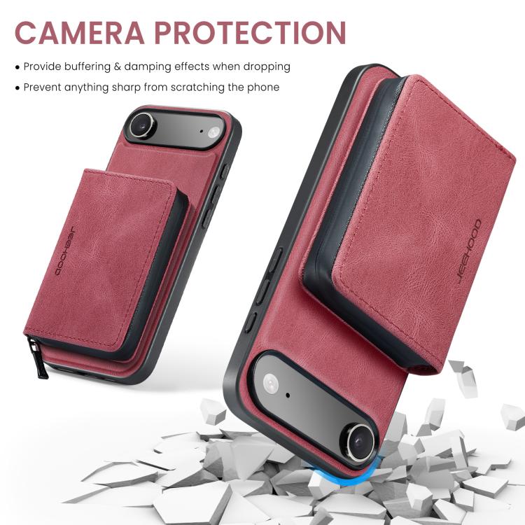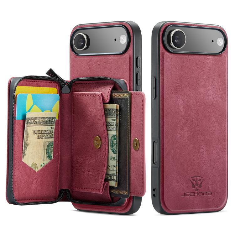 Funda de piel con cremallera magnética JEEHOOD J02 tipo libro horizontal para iPhone Air (Roja)