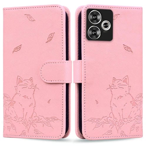 Funda de Piel con Estampado de Gato para Xiaomi Poco F6 (Rosa)