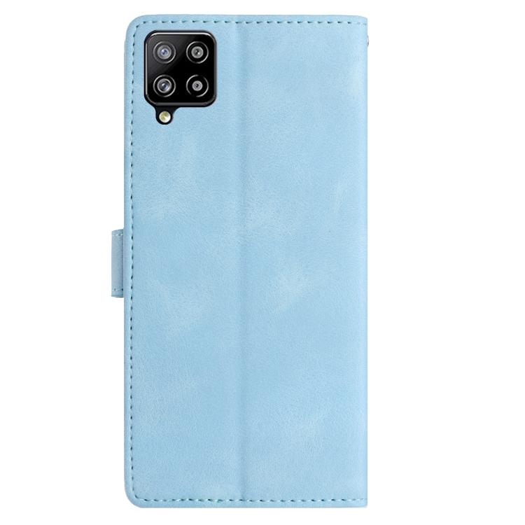 Funda de piel con estampado floral en relieve para Samsung Galaxy A42 (azul cielo)