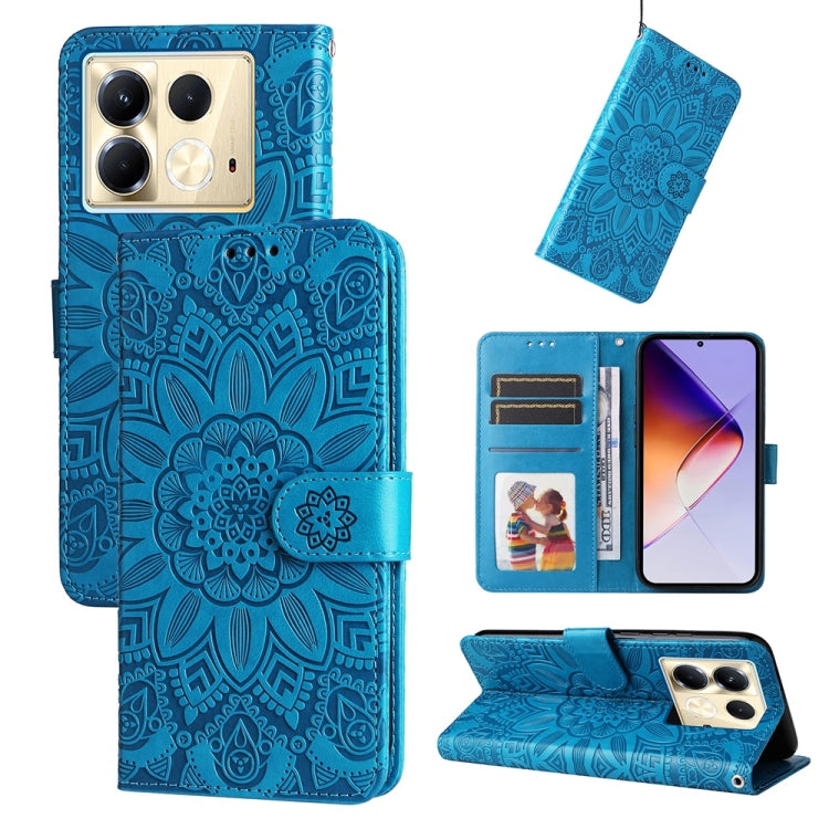 Funda de Piel con Relieve de Girasol para Infinix Note 40 5G (Azul)