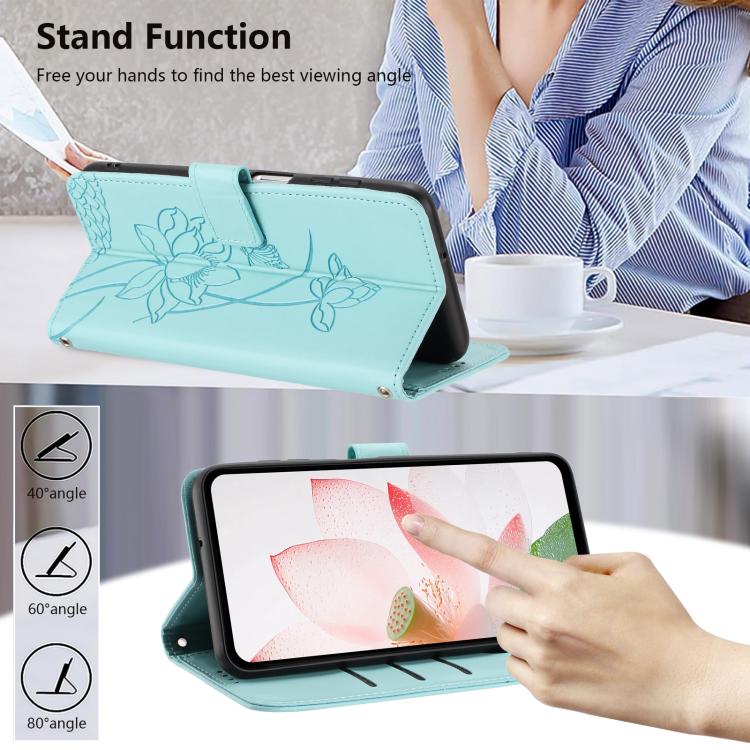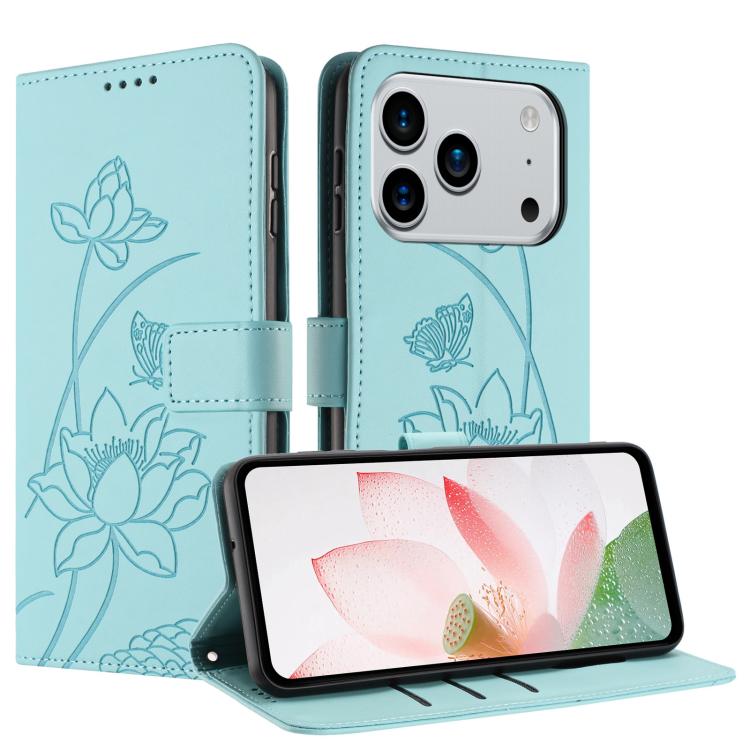 Funda de piel con relieve de loto para iPhone 17 Pro con cordón (verde)