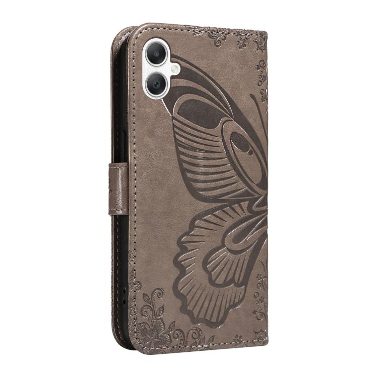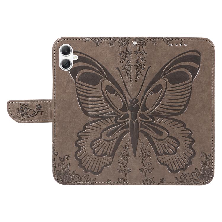 Funda de piel con relieve de mariposa para Samsung Galaxy A07 5G (gris)