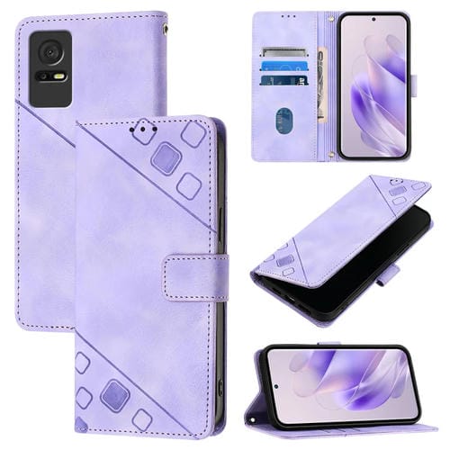 Funda de Piel con Relieve para Teléfono TCL 405/406/408 (Morado Claro)