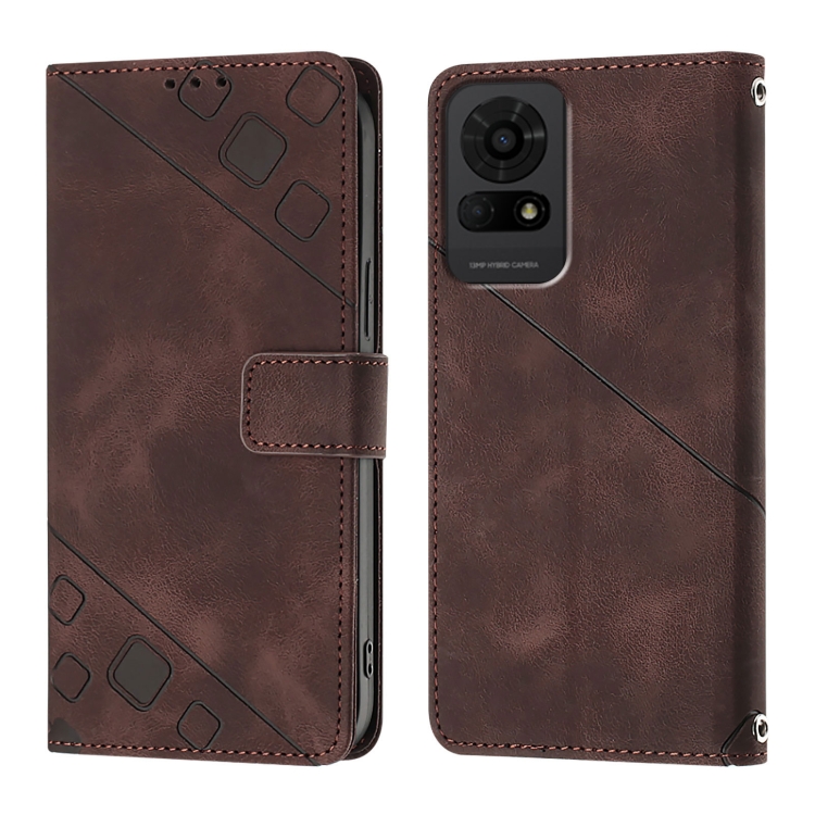 Funda de Piel con Relieve para Teléfono TCL 50 Le 5G (Marrón)