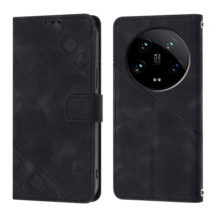 Funda De Piel Con Relieve Para Teléfono Xiaomi 14 Ultra Skin Feel (Negra)