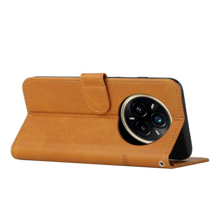 Funda de Piel con Textura de Becerro y Hebilla para Realme 14 Pro+ (Amarilla)