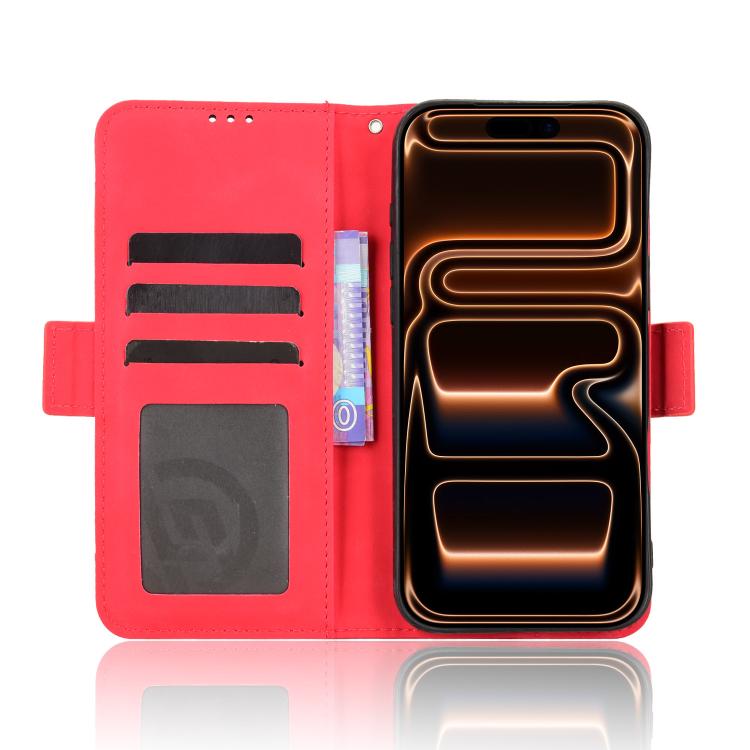 Funda de piel con textura de becerro y ranuras para tarjetas para iPhone 17 Pro Max (roja)