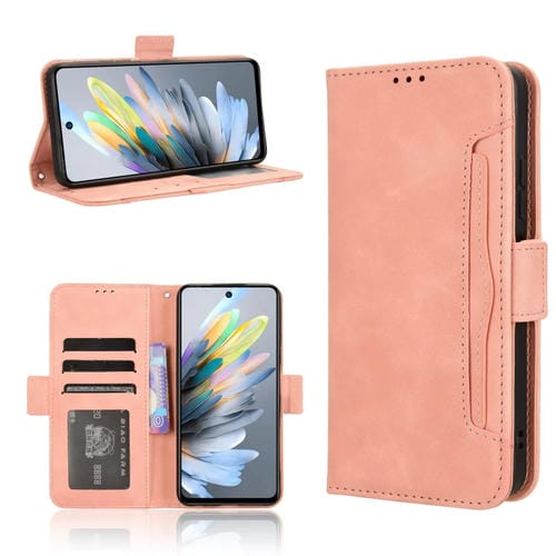 Funda de Piel Becerro para ZTE Blade A75 4G con Ranuras para Tarjetas (Rosa)