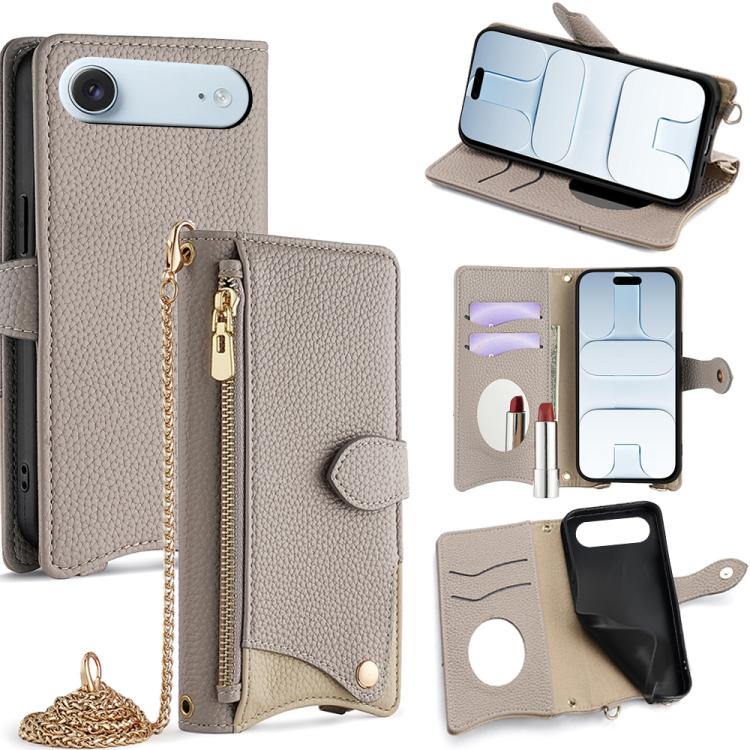 Funda de piel de lichi con diseño de cola de pez y cadena cruzada para iPhone Air (gris)