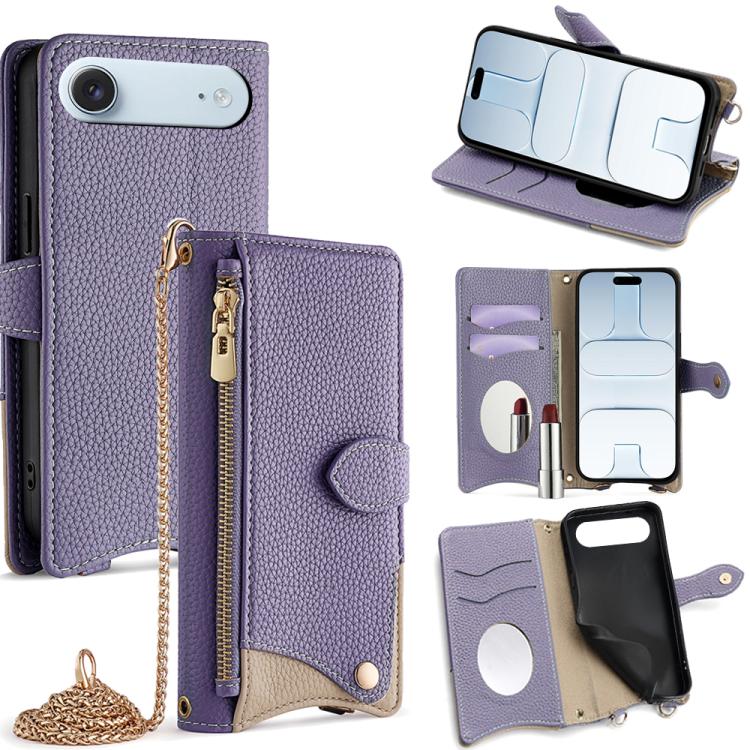Funda de piel de lichi con diseño de cola de pez y cadena cruzada para iPhone Air (morado)