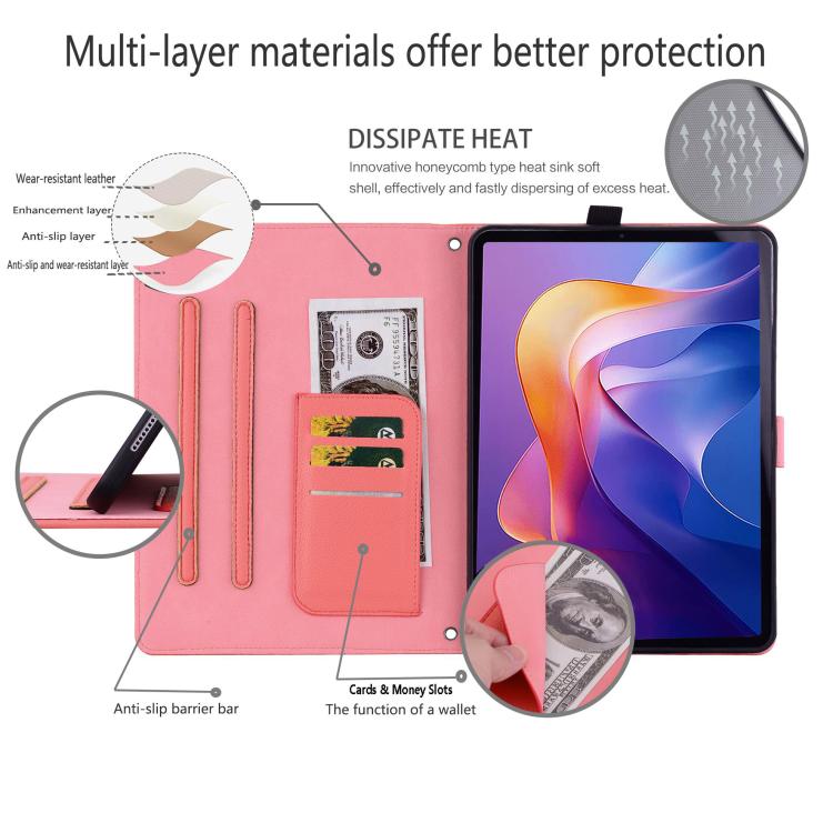 Funda de piel de lichi con tacto de gato para Xiaomi Redmi Pad SE 8.7 (rojo sandía)