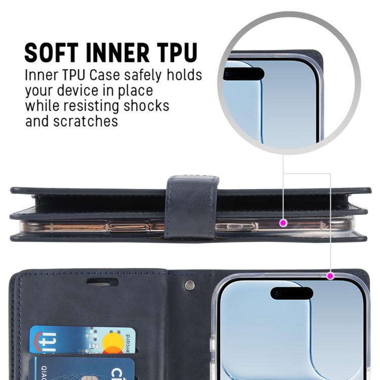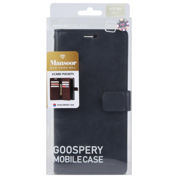 Funda de piel para iPhone Air GOOSPERY MANSOOR DIARY con 9 ranuras para tarjetas (Azul oscuro)