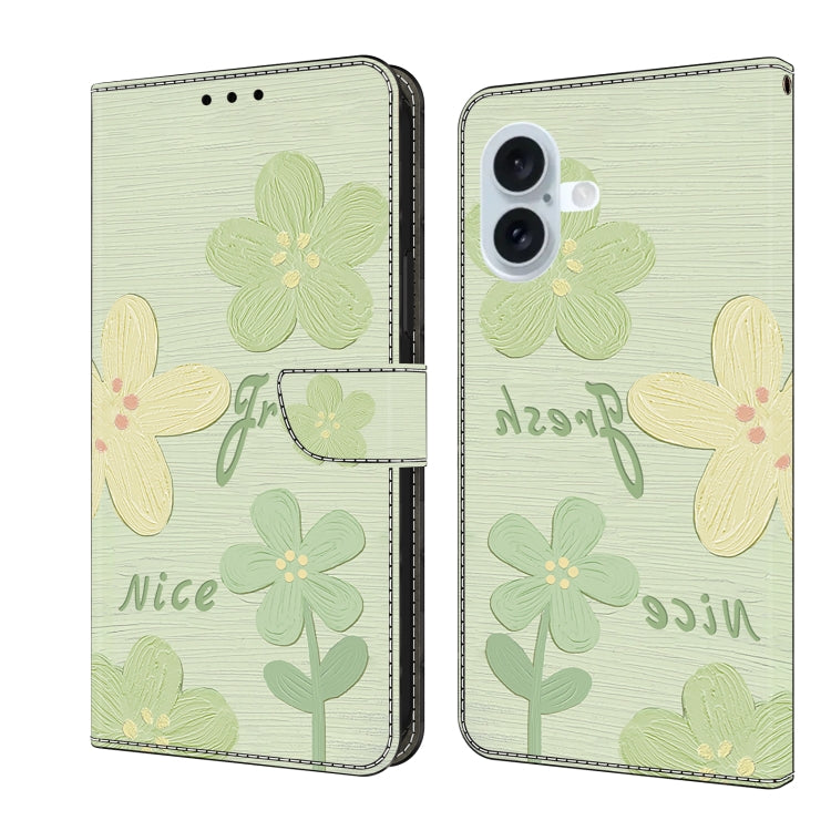 Funda de Piel para iPhone 16 Pintada a Mano Flores Frescas