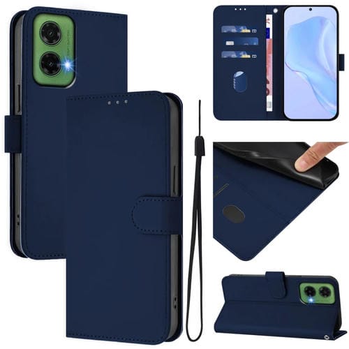 Funda de Piel Sintética con Cordón para Motorola Moto G35 (Azul Marino)