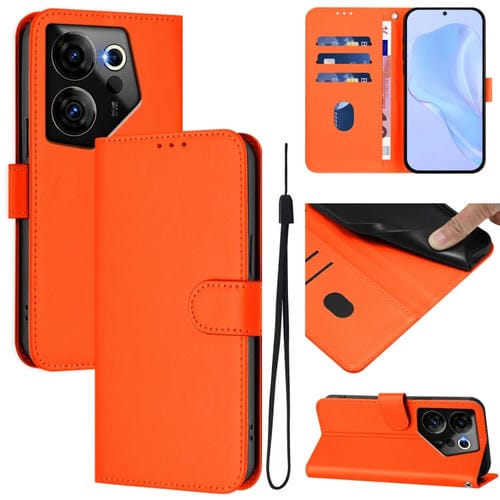 Funda de Piel con Textura y Cordón para Tecno Camon 20 Premier 5G (Naranja)