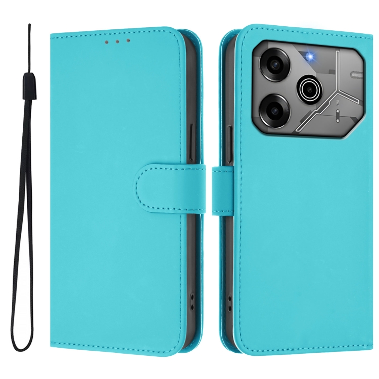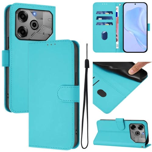 Funda de Piel con Cordón para Tecno Spark 6 Go/Go 2021 (Azul Lago)