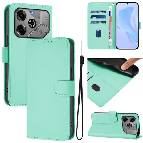 Funda de Piel Sintética con Cordón para Tecno Spark 6 Go/Go 2021 (Verde Menta)