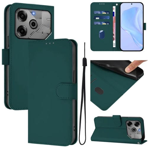 Funda de Piel Sintética con Cordón para Tecno Spark 6 Go/Go 2021 (Verde Oscuro)