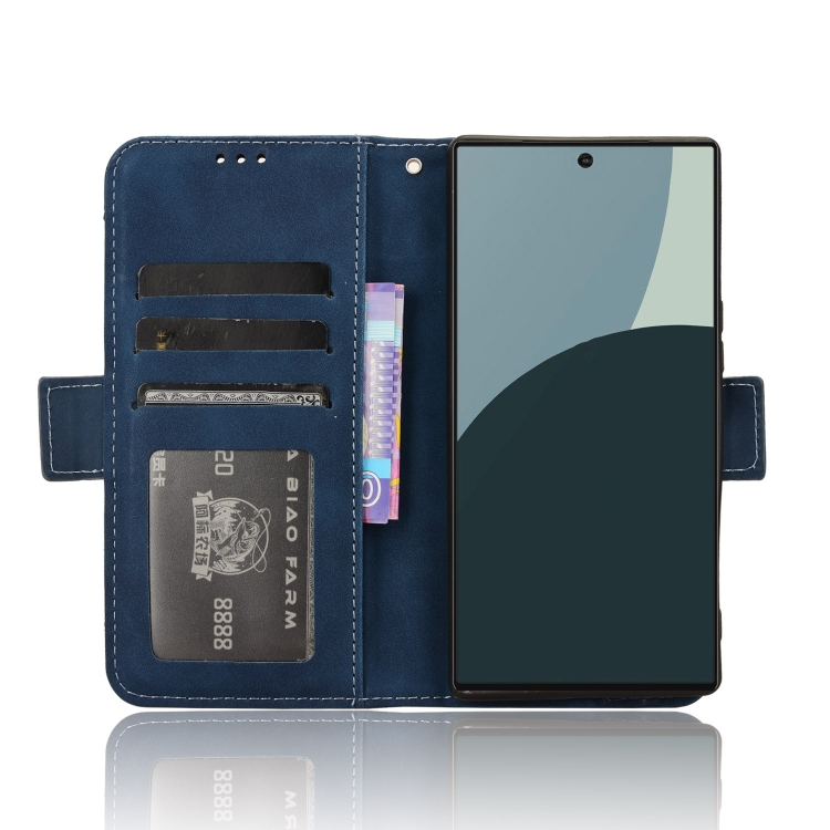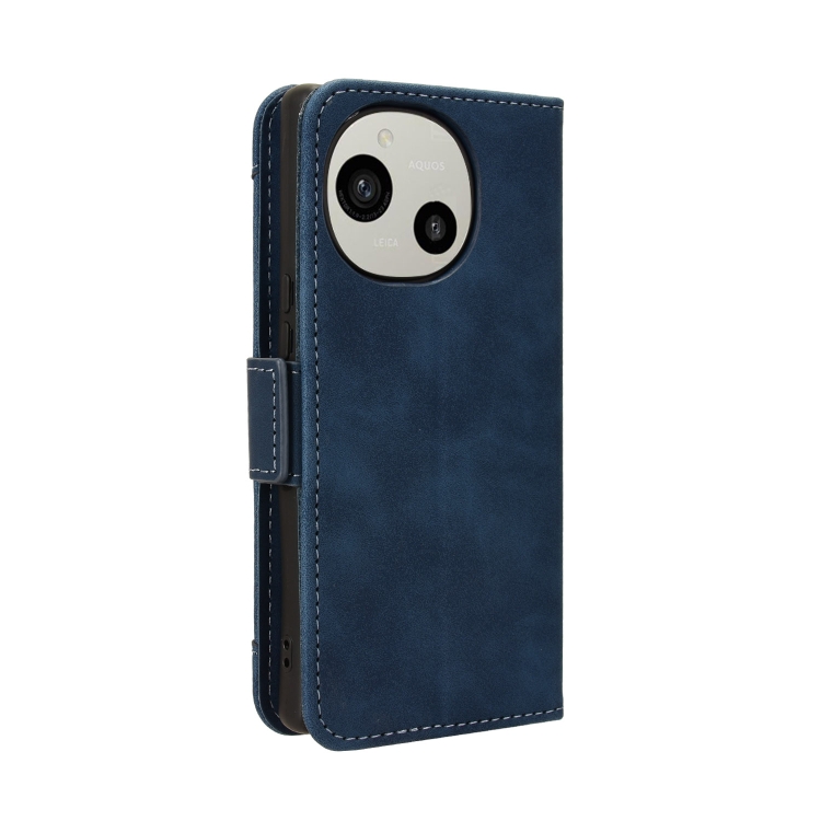 Funda de Piel Sintética con Textura de Becerro y Ranuras para Tarjetas para Sharp Aquos R9 (Azul)