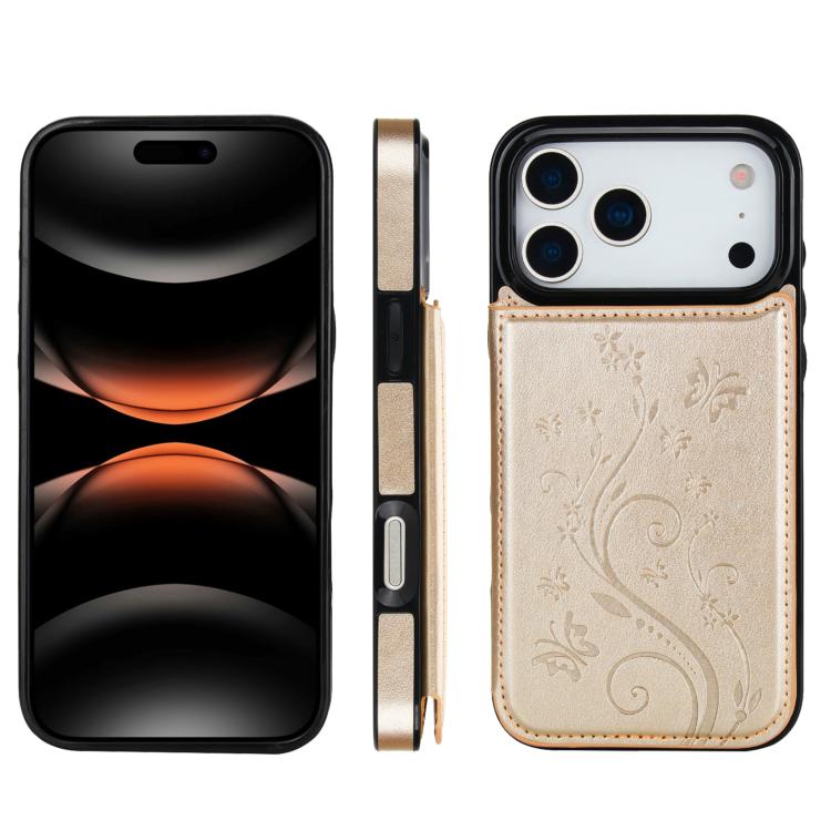 Funda de PU con doble hebilla y estampado de mariposa para iPhone 17 Pro (dorada)