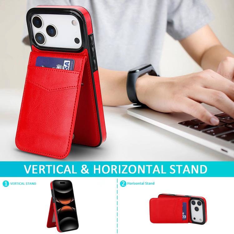 Funda de PU con ranuras para tarjetas para iPhone 17 Pro Max (color sólido, rojo)
