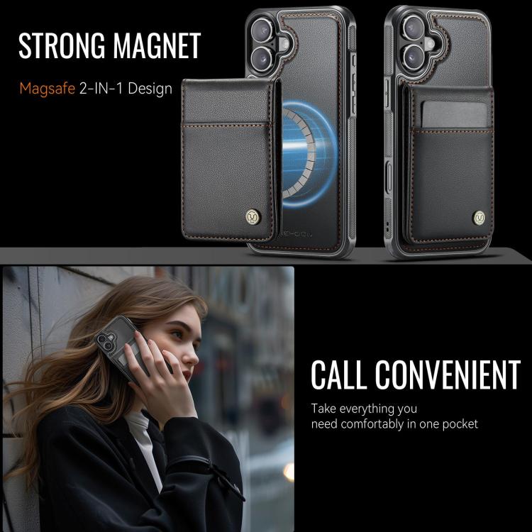 Funda de PU estilo británico para iPhone 17 JEEHOOD J06 con tarjetero RFID MagSafe (negra)