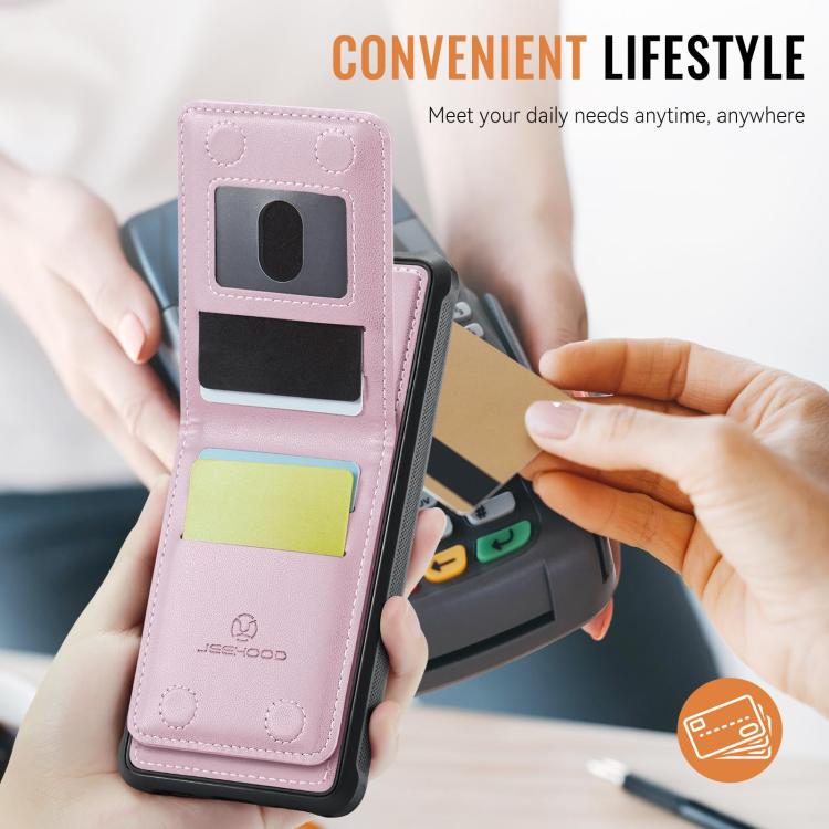 Funda de PU estilo británico para iPhone 17 JEEHOOD J06 con tarjetero RFID MagSafe (rosa)