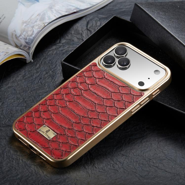 Funda de PU galvanizada con textura de pitón Fierre Shann para iPhone 17 Pro Max (roja)