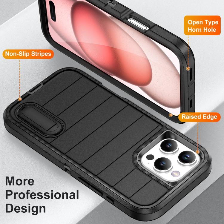 Funda de Silicona y PC Defender Gen2 para iPhone 16 Pro Max con Soporte (Negro)