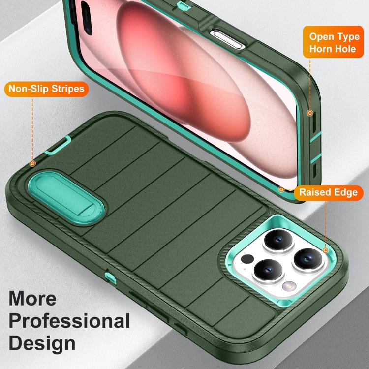 Funda de Silicona y PC Defender Gen2 para iPhone 16 Pro Max con Soporte (Verde Oscuro y Cian)