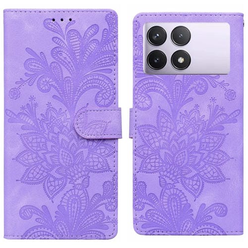 Funda de Teléfono con Hebilla Magnética de Pu con Encaje Floral En Relieve y Correa para la Muñeca para Redmi K70E / Poco X6 Pro (Púrpura)