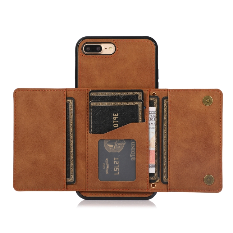 Funda de Teléfono Cuero Tridimensional con Ranura Tarjeta Billetera Soporte iPhone 8 Plus y 7 Plus (Brown)