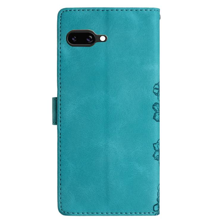 Funda de teléfono PU con relieve de piel Mariposa y flor de Cerezo para Google Pixel 9A (Verde)