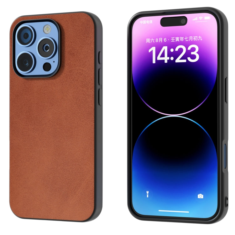 Funda de Teléfono PU Becerro Dos Colores Marco Negro para iPhone 16 Pro (Marrón)