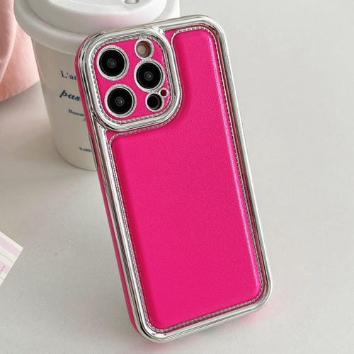Funda de teléfono TPU con borde galvanizado y acabado esmerilado para iPhone 16 Pro (Rosa Rojo)