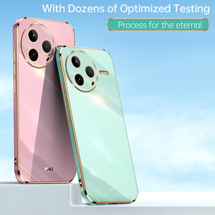 Funda de TPU con Borde Dorado y Revestimiento 6D Recto para Redmi K80 Xinli (Azul Celestial)