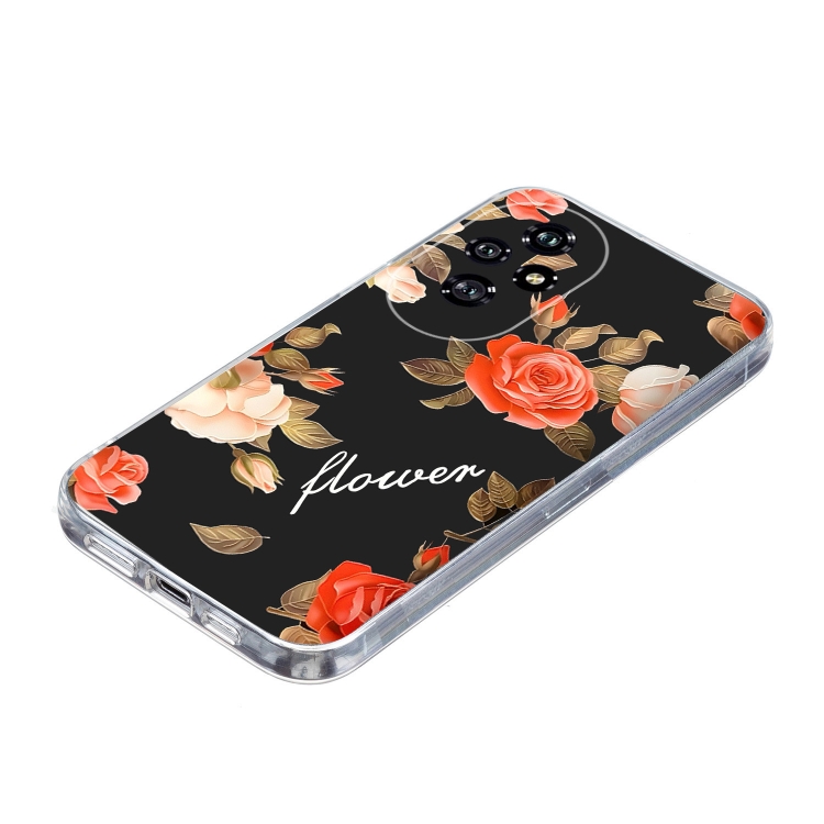 Funda TPU Honor 200 Pro Patrón Pintura Colorida Flores (Negro)