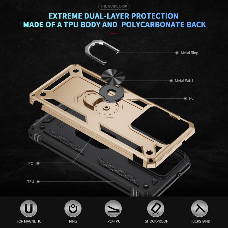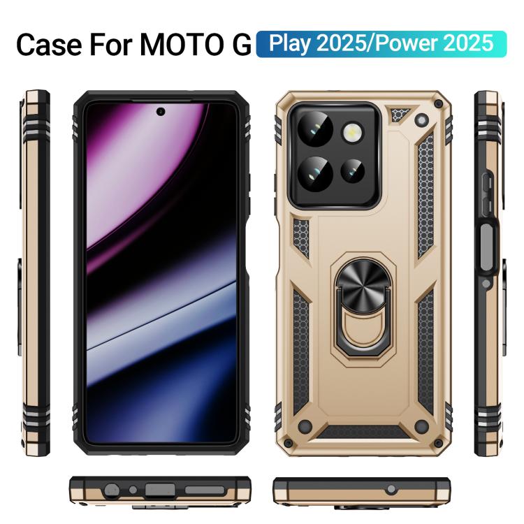 Funda TPU + PC a Prueba de Golpes con Soporte para Motorola Moto G Play 2025 / G Power 2025 (Dorada)